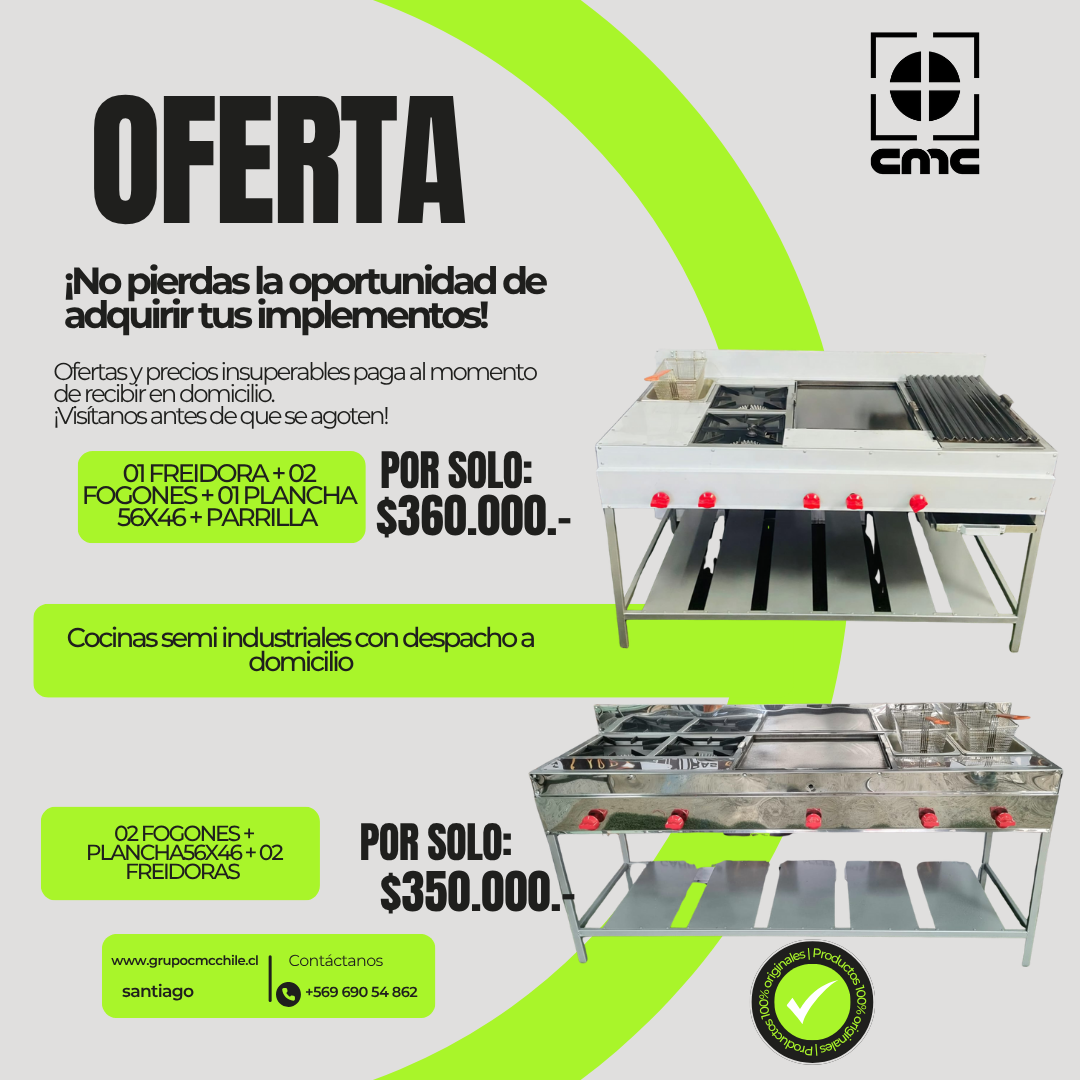 Fabricación de cocinas semi-industriales a pedido Diseñamos tu cocina según tus necesidades y estilo, con soluciones personalizadas que se adaptan a cada proyecto. Realizamos despachos dentro de la Región Metropolitana y a distintas regiones del país.